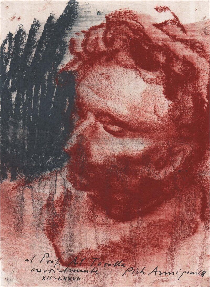 OPERA - "Autoritratto" è un disegno originale in sanguigna, caratterizzato dalla dedica all'amico artista Alberto Torella (un dettaglio raro, molto importante per il valore collezionistico).