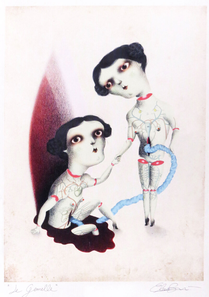 Eleonora Burri esplora, con tecnica mista e taglio espressivo, un universo figurativo spinto ai margini dell'estetica figurativa convenzionale. Nelle sue opere il grottesco si fa linguaggio, il simbolo si deforma, e l’immagine rinuncia deliberatamente all’armonia per farsi attrito, disagio, tensione. Vicina per attitudine a figure come JennyBird, Burri lavora su un registro che potremmo definire di simbolismo grottesco, dove il corpo, il volto, l’identità si sfaldano in visioni ambigue e viscerali, portatrici di una verità non levigata.