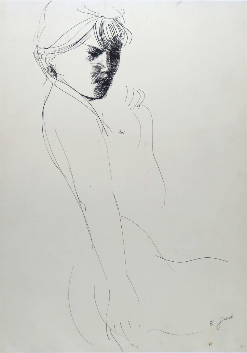 Nelle grafiche di Emilio Greco, le giovani si offrono allo sguardo come in un gioco d'ombre. I corpi non sono mai esibiti: sono presenze raccolte, spesso col capo chino, le spalle curve, le mani unite. La linea, precisa e leggera, modella un corpo che è idea e memoria, non esibizione. Queste figure non parlano: si ascoltano.