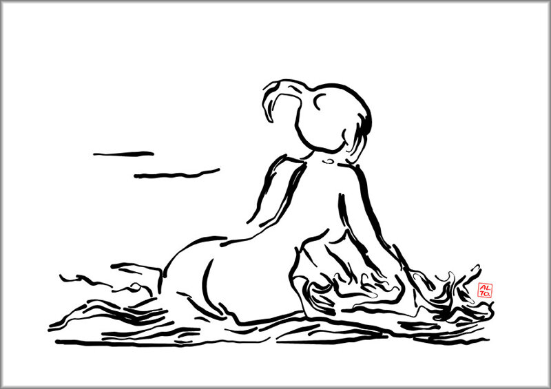 Alberto Torella (Naples 1929, Rome 2019). The artist's inspiring idea was to capture instants of sensuality in the most casual and spontaneous actions of young women intent on enjoying the sun, the beach and the sea. The challenge? «Just the same as the impressionist