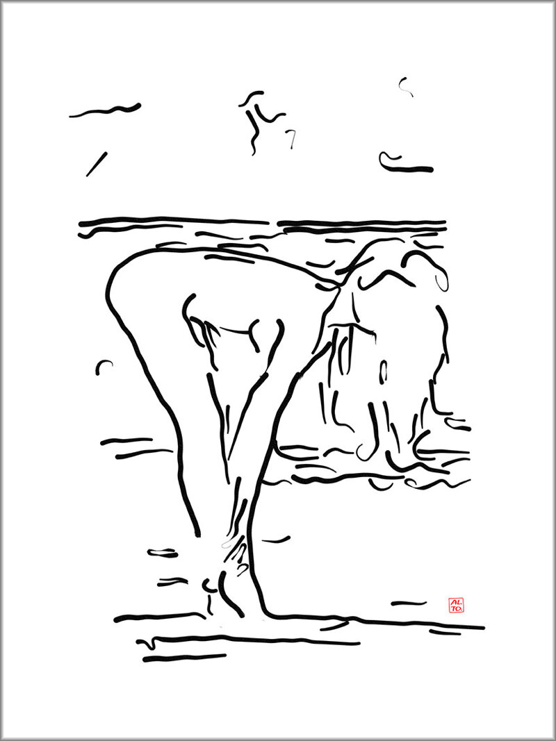 Alberto Torella (Naples 1929, Rome 2019). The artist's inspiring idea was to capture instants of sensuality in the most casual and spontaneous actions of young women intent on enjoying the sun, the beach and the sea. The challenge? «Just the same as the impressionist