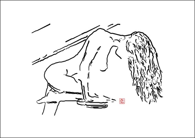 Alberto Torella (Naples 1929, Rome 2019). The artist's inspiring idea was to capture instants of sensuality in the most casual and spontaneous actions of young women intent on enjoying the sun, the beach and the sea. The challenge? «Just the same as the impressionist