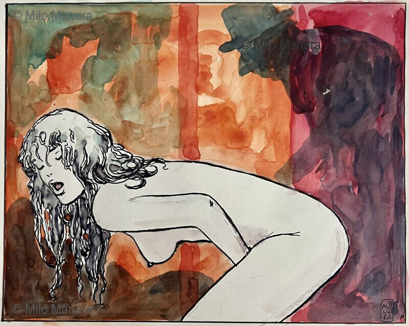 Note - I disegni femminili di Milo Manara (Luson, 1945) sono caratterizzati da una raffinatezza estetica e una sensualità che emergono con forza attraverso linee fluide e dettagli minuziosi. L'artista, noto per la sua abilità nel rappresentare il corpo umano, riesce a trasmettere una delicatezza nei tratti che non perde mai di intensità espressiva. Le sue figure femminili, pur con la carica erotica che spesso le accompagna, sono raffigurate con una straordinaria grazia, come protagoniste di narrazioni visive che mescolano l'immaginazione con l'eleganza. Ogni donna ritratta da Manara sembra avere una propria storia da raccontare, un mondo interiore ricco di emozioni e desideri.