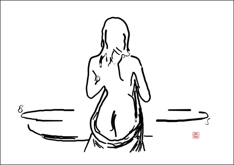 "Dana in bathroom" is a Line Art style drawing. It is part of the collection entitled "When the night ends", created by the famous Italian figurative artist